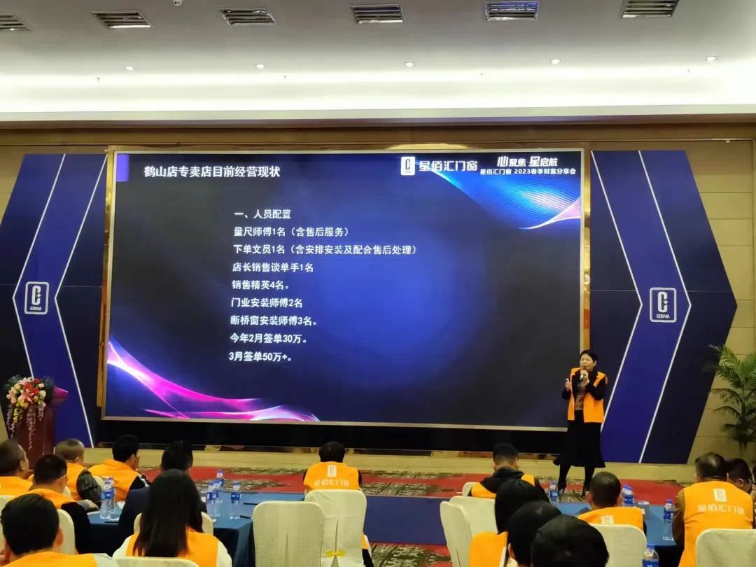星佰汇门窗营销中心负责人罗总在会上作营销“星”战略主题演讲分享。他表示,2023年星佰汇将进一步升级品牌战略布局,向用户传播活力、时尚、向上的品牌形象,打通线上线下传播渠道,为深化品牌记忆添砖加瓦,助力终端门店引流获客。他具体分享道,“2023聚焦增长,将围绕目标、场景、服务行动,三五规划营销动作促增长,持续赋能终端、市场竞争力。‘’